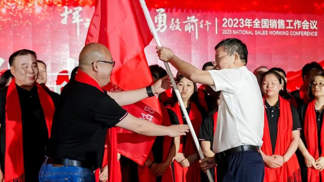 公司根據(jù)產(chǎn)品結(jié)構(gòu)和市場實(shí)際,重新調(diào)整了營銷總監(jiān)分工,成立了北部、中部、南部三個(gè)戰(zhàn)區(qū),使管理垂直、效率更高、責(zé)任更明。董事長、總經(jīng)理陳益智為三個(gè)戰(zhàn)區(qū)授旗,大家紛紛表示,克服困難,勇毅前行,堅(jiān)決完成公司制定的營銷目標(biāo)。