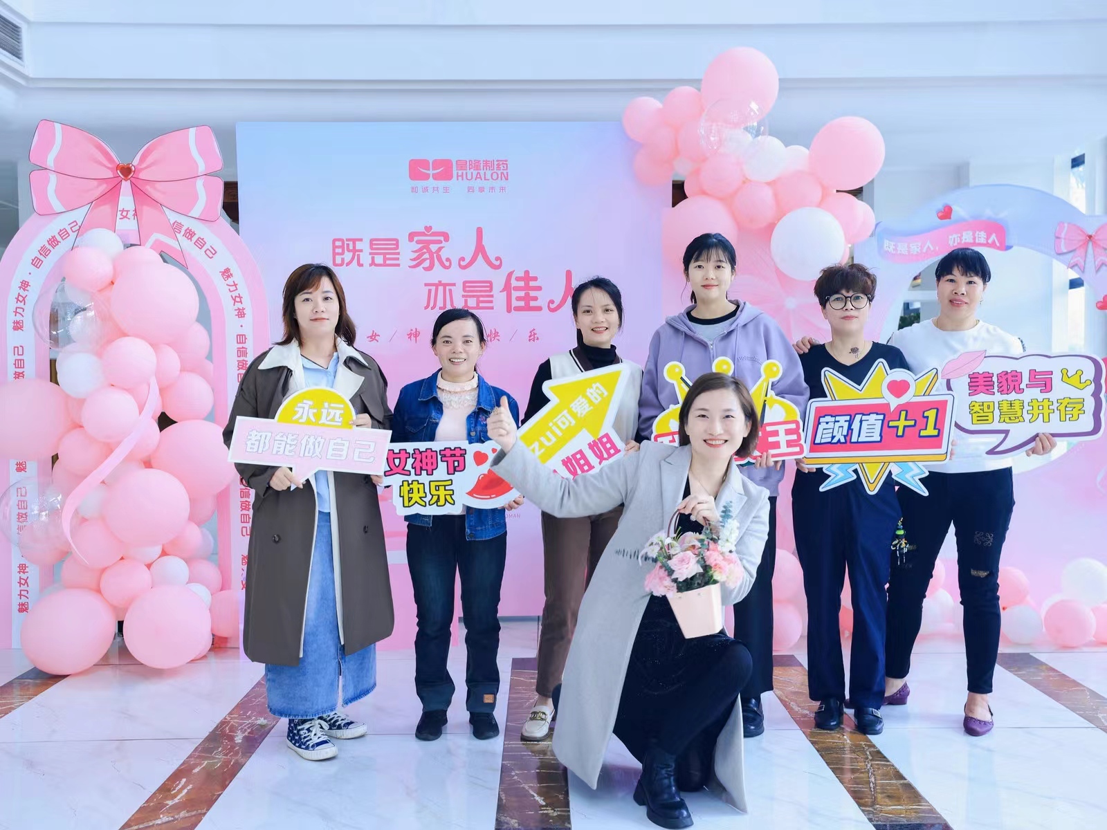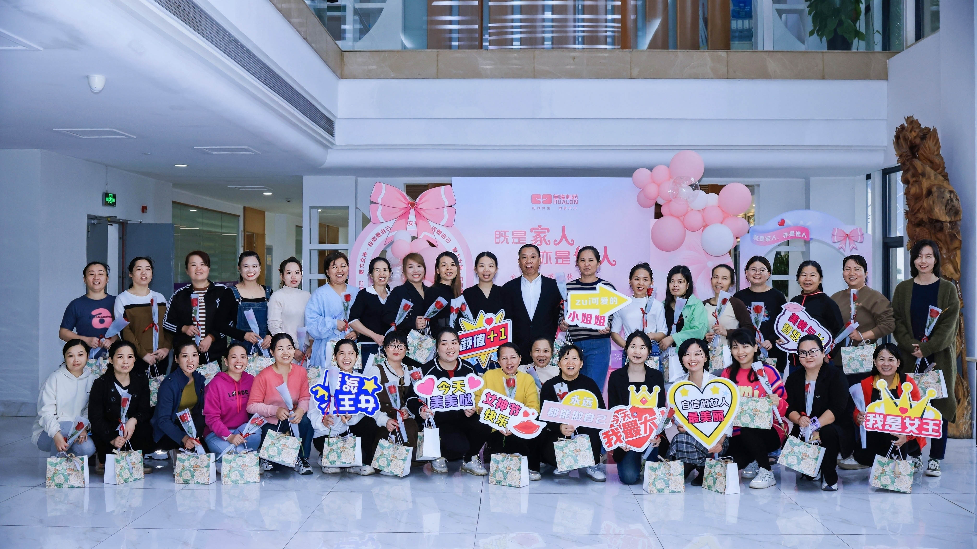 女職工代表一致表示,感謝公司和工會領(lǐng)導(dǎo)的親切關(guān)懷,在今后的工作和家庭生活中發(fā)揮“半邊天”作用。隨后女職工代表紛紛來到文化墻前合影留念,留下最美麗動人的皇隆倩影!